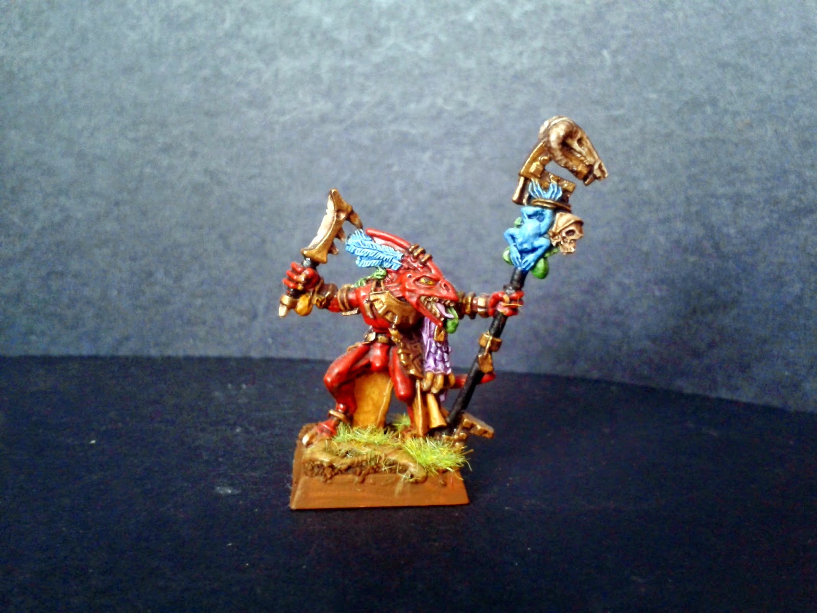 Muszę powiedzieć, że lubię malować, sprawia mi to wielką frajdę - szczególnie wtedy kiedy efekt mojej pracy jest zadowalający. Tak też jest i w tym przypadku. Model Kapłana Skinków sam w sobie jest świetny dodatkowo podoba mi się jak go pomalowałem - i tak oto jestem zadowolony z końcowego efektu.