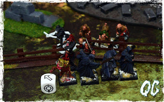 Wiedziałem, że ta potyczka nie będzie prosta ze względu na jeszcze większą mobilność modeli przeciwnika niż w poprzedniej potyczce oraz fakt, że miał przewagę liczebną w stosunku do mojej bandy. Właściwie nie miałem jakiegoś super planu na to starcie i może dlatego na pewnym jego etapie gdy szeregi pocztu Krwawych Smoków zaczęły topnieć w oczach zrobiło mi się "ciepło".